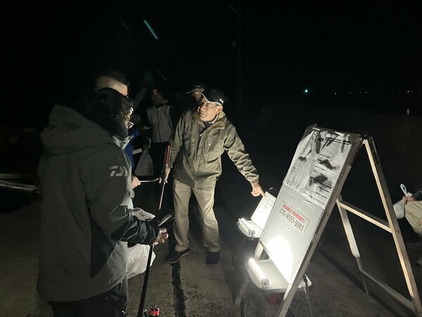 受付でゼッケンと参加賞をもらったら渡船名と渡船場所の確認です。抽選でどの渡船になったのでしょうか?