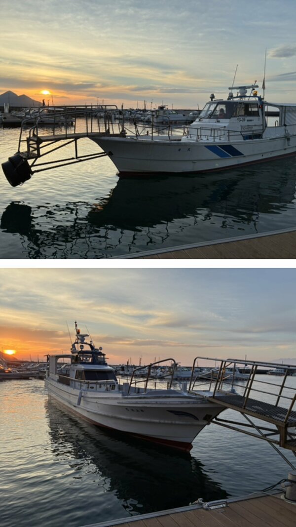 愛媛大会でお世話になっております、桧垣渡船様の第5清丸と清丸です。釣況を見ながら磯の選定をしていただいております。いつもありがとうございます。
