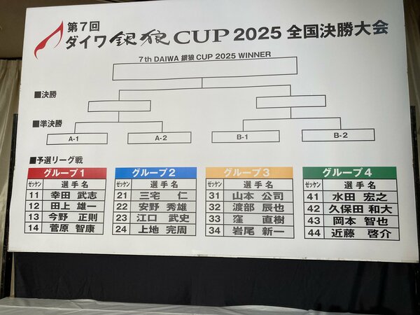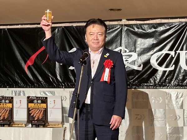 第7回ダイワ銀狼カップ2025 全国決勝大会は決勝戦終了30秒前の一発逆転劇を見せてくれた山本公司選手が優勝の栄冠を勝ち取りました。選手全員で山本選手を胴上げしその栄誉を称えます。本当におめでとうございました。
