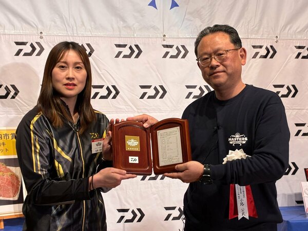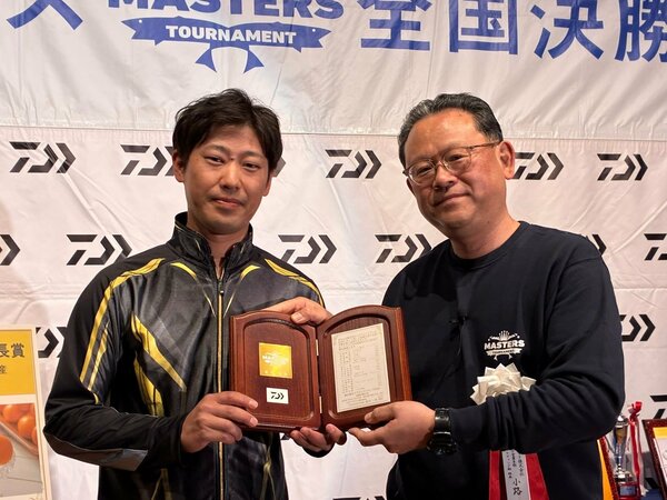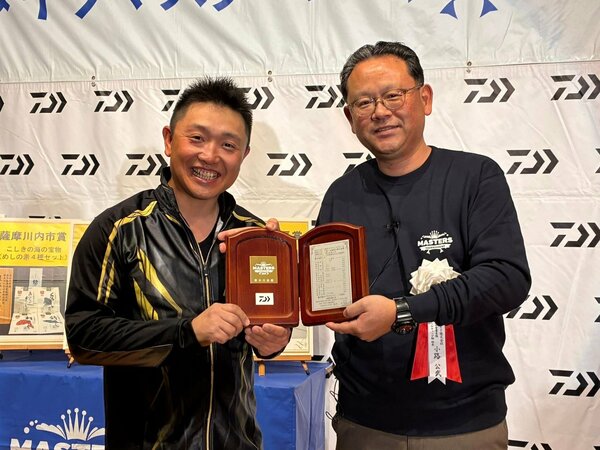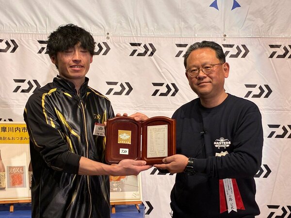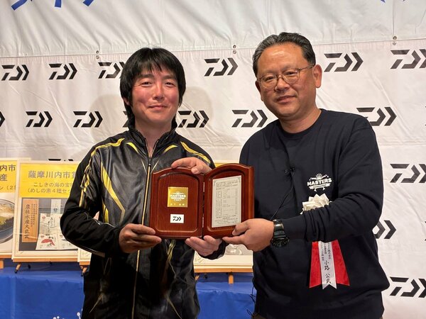 選手の皆さんが釣ったグレを薩摩川内市社会福祉協議会様を通し、福祉施設に寄贈させていただきました。選手の皆様ありがとうございました。お受け取りいただいたのはグループ長の植村俊也様です。プレゼンターは選手の皆様を代表して昨年のチャンプ外輪選手です。