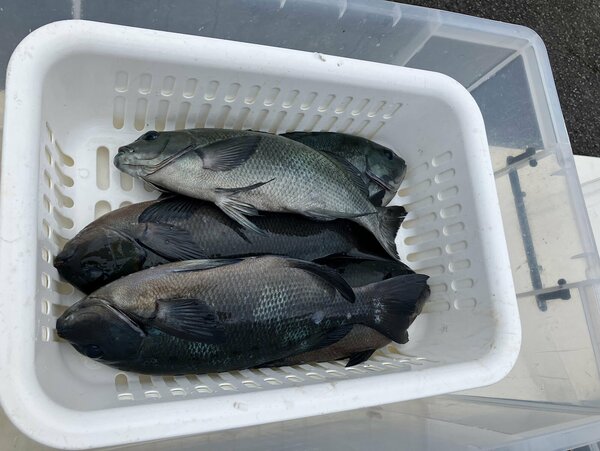 順番にバッカンからグレをカゴに移し、検量の準備です。