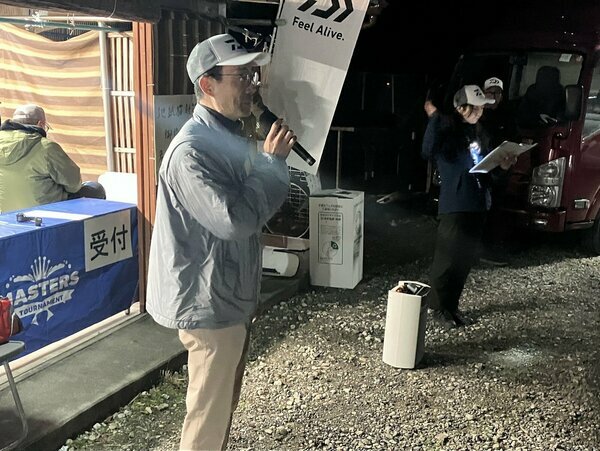 大会委員長がスムーズな大会運営へのご協力に感謝の意を述べます。また、少し時間をいただいて、グローブライドが取り組む「ダイワヤングフィッシングクラブ」を紹介させていただいております。