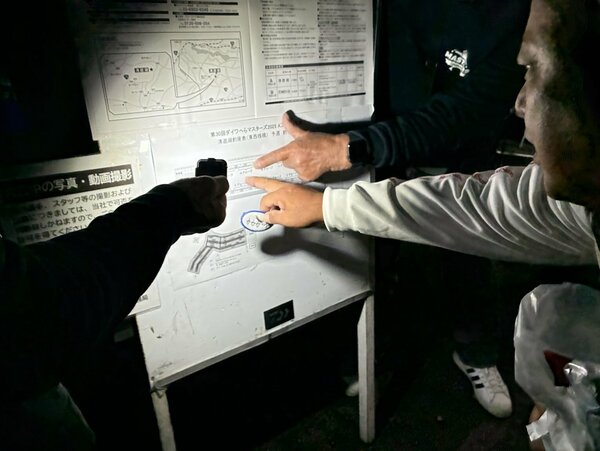 決定戦の釣り座抽選を行っています。緊張の瞬間です。誰と並ぶかな?